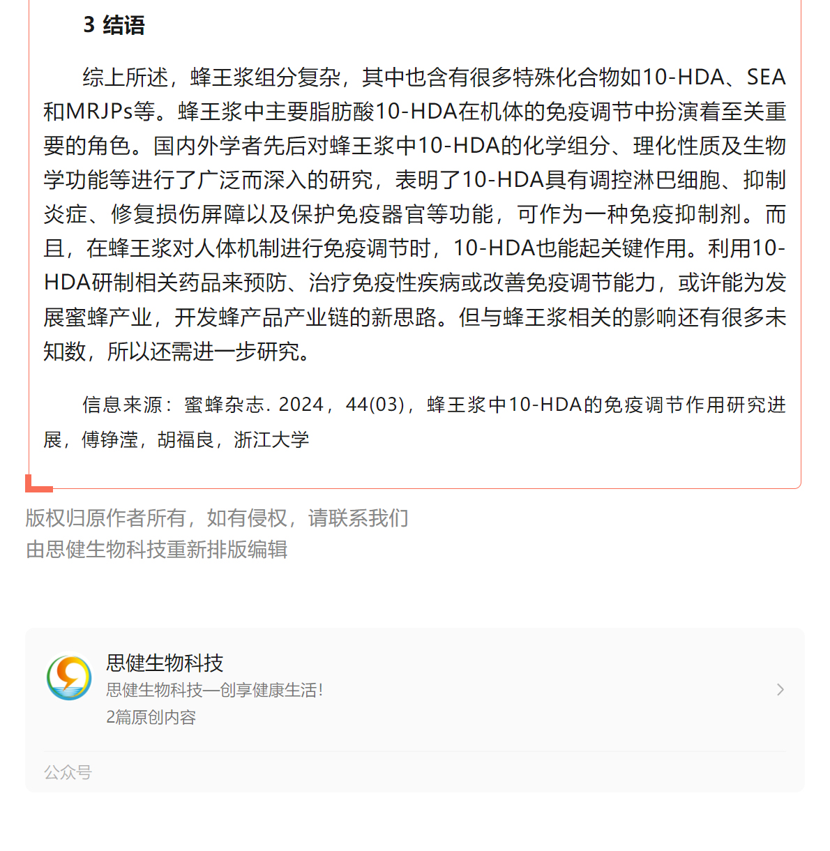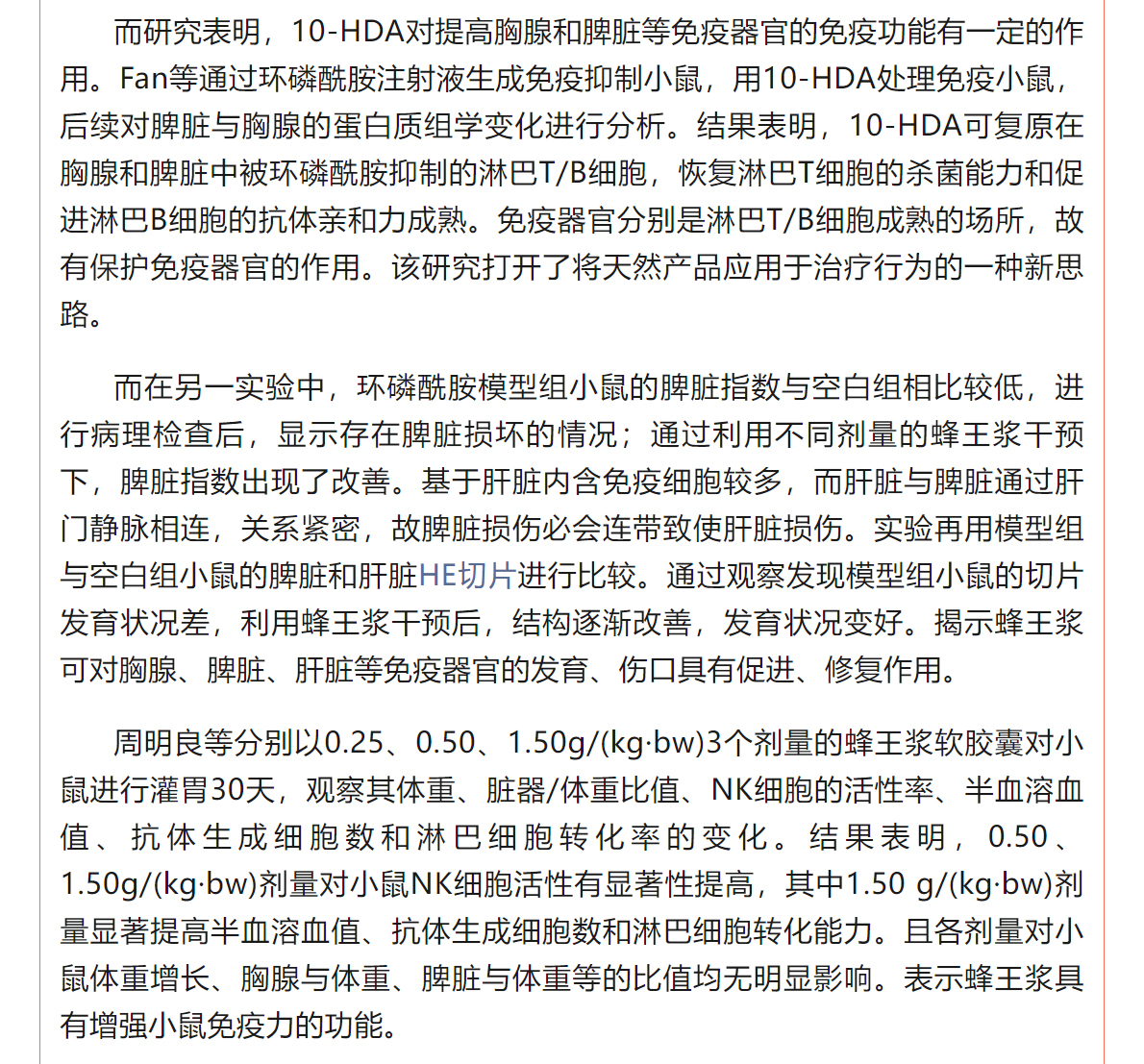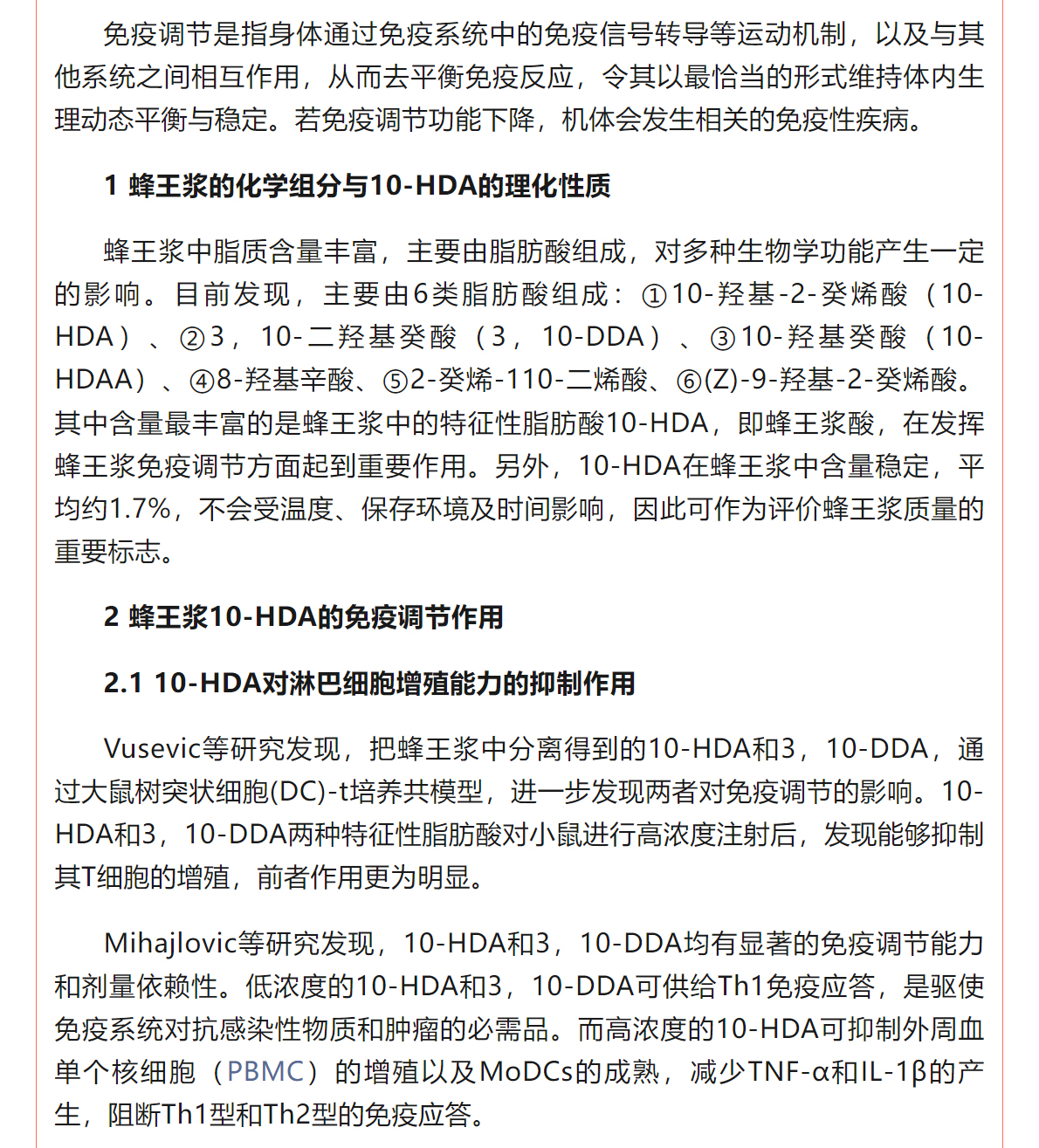 蜂王漿中10-HDA的免疫調(diào)節(jié)作用研究進展